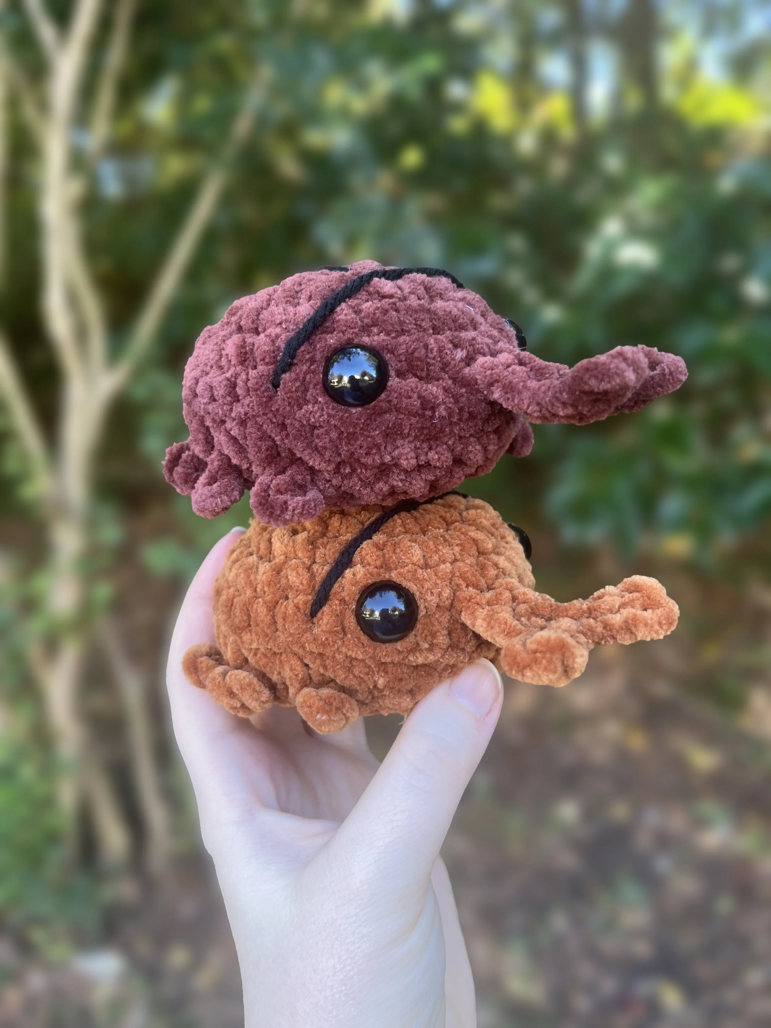 I primarily use my own original designs when crafting my plush, but occasionally will use patterns designed by other talented crochet artists (with permission to make and sell these plushies using their patterns).
